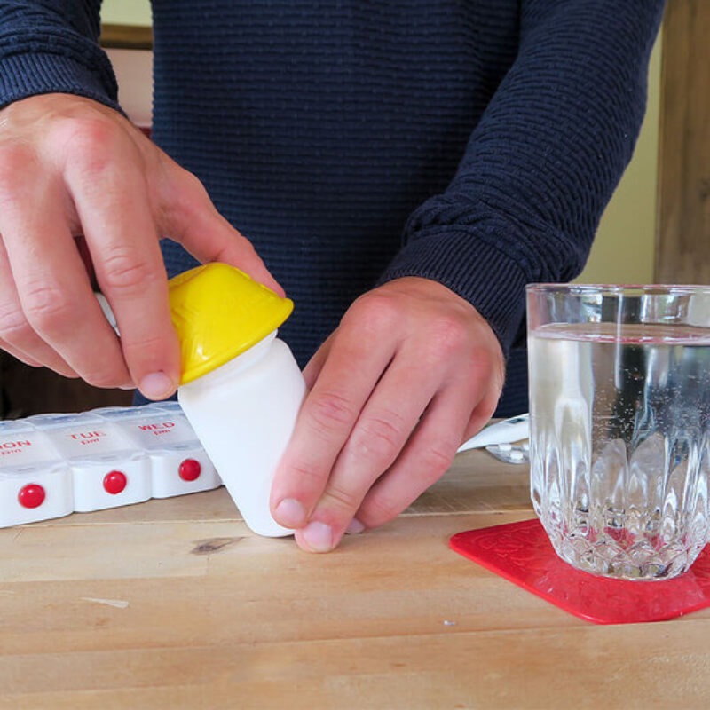 O Abre-frascos em silicone indicado para facilitar a abertura de frascos e garrafas com menos esforço e mais conforto. Adapta-se à mão e à tampa, sendo adequado para pessoas com pouca força nas mãos, artrite reumatoide ou limitações nos dedos e punhos.