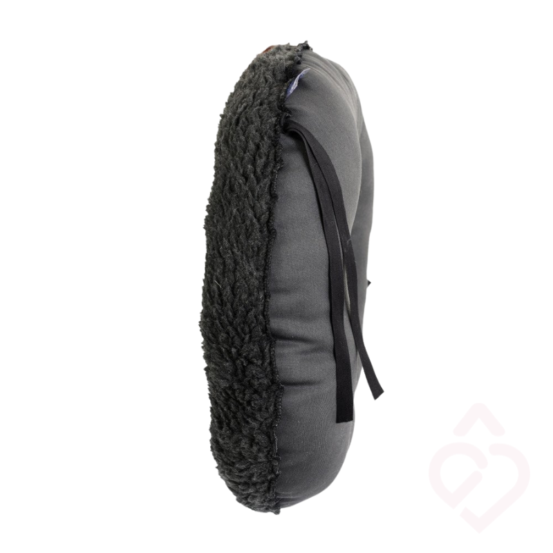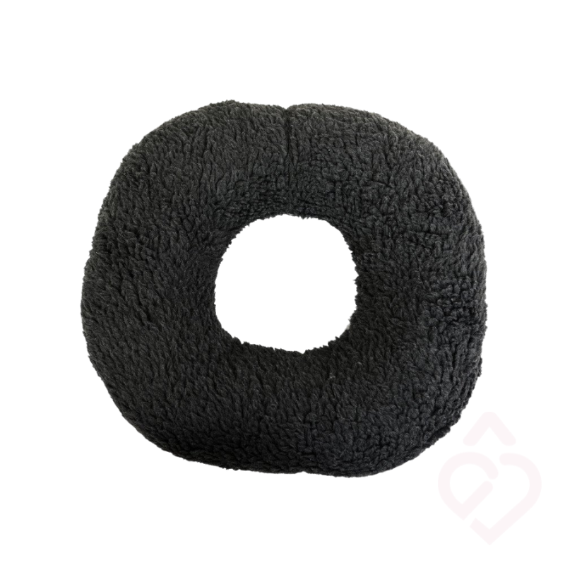 O formato donut permite aliviar a pressão na zona central de contacto, ajudando na prevenção e no apoio ao tratamento de escaras. A almofada apresenta textura suave e confortável, com um lado em 100% algodão e outro em pelo sintético. Pode ser utilizada em diferentes assentos, como cadeiras, cadeirões, cadeiras de rodas ou no automóvel.