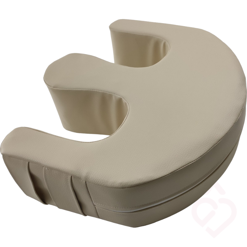 Dispõe de alças de apoio que permitem ao cuidador controlar melhor o movimento durante a rotação. O interior em espuma de alta densidade mantém a forma e oferece suporte firme, enquanto a capa macia proporciona conforto ao toque.