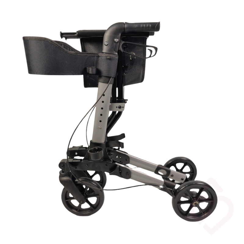 Andarilho de quatro rodas dobrável – indicado para pessoas com algumas dificuldades de marcha e que necessitam de um apoio extra. O uso deste andarilho oferece maior conforto e equilíbrio, ajudando a melhorar as capacidades de marcha e promovendo uma deslocação mais segura.