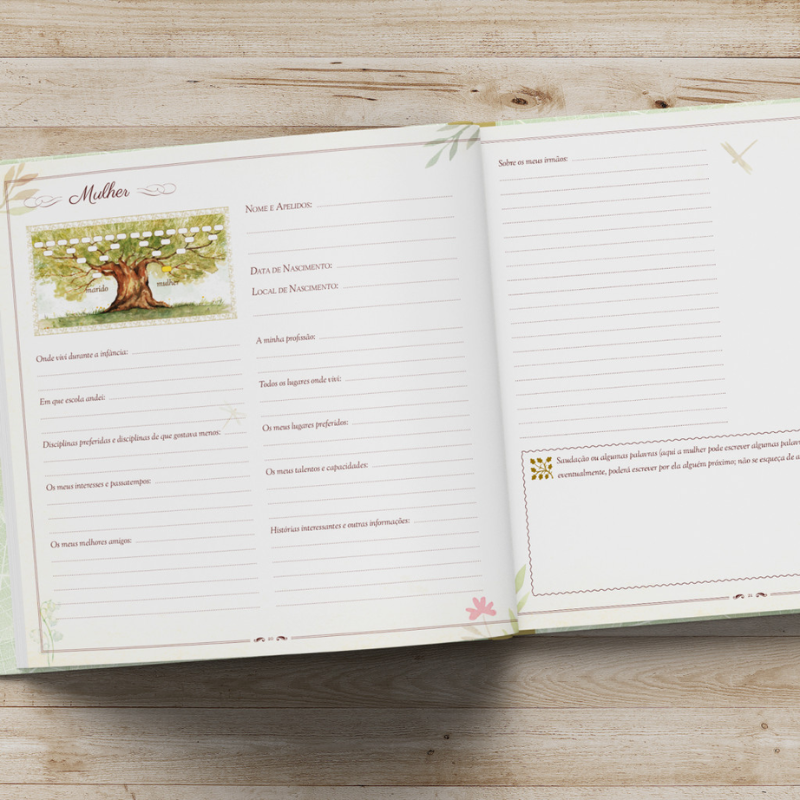 A Árvore da Nossa Família é um livro especial que guarda a história e a memória de várias gerações. Nele pode preencher a árvore genealógica até à 5.ª geração, acrescentar fotografias e escrever detalhes únicos sobre cada membro da família.