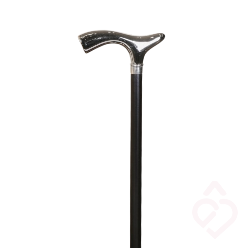 A Bengala Faia Preta com Punho Plano Prateado é indicada para pessoas com mobilidade reduzida que procuram um apoio fiável com um design discreto e elegante. Combina funcionalidade com um toque de sofisticação.