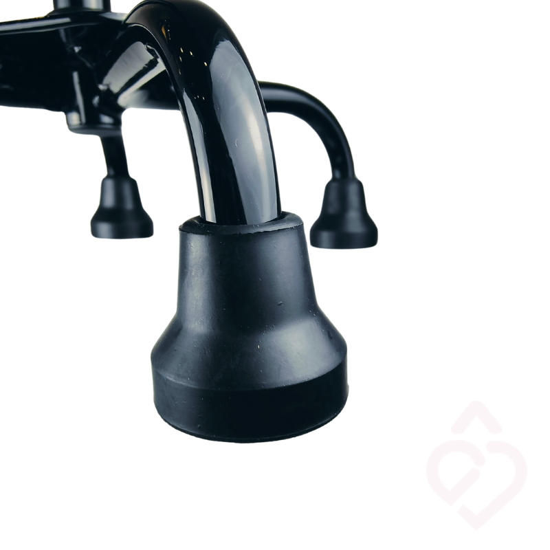 Segurança – as ponteiras são silenciosas e em borracha antiderrapante. A base com quatro apoios reforça a estabilidade durante a marcha.
