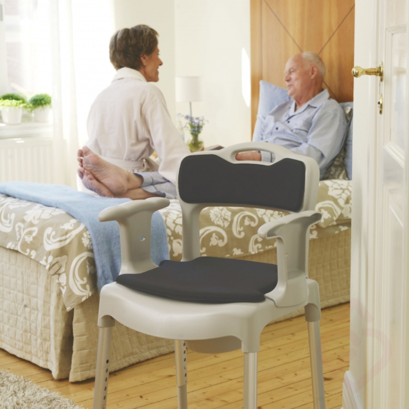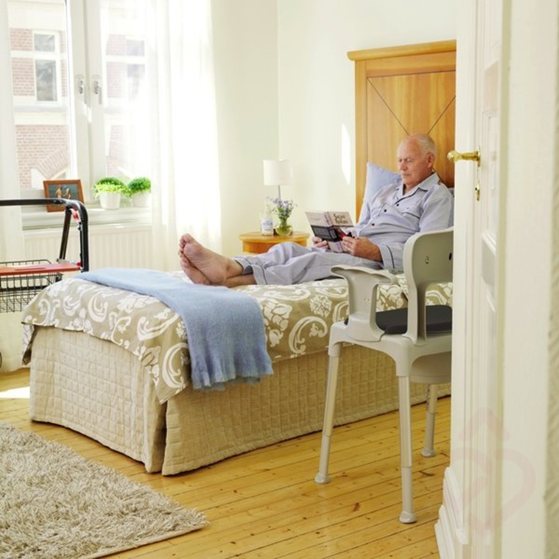 Indicada para pessoas com mobilidade reduzida, dificuldades em deslocar-se até à casa de banho ou necessidade de apoio ao sentar e levantar. Adequada para utilização junto à cama, na casa de banho, no duche ou em frente ao lavatório.