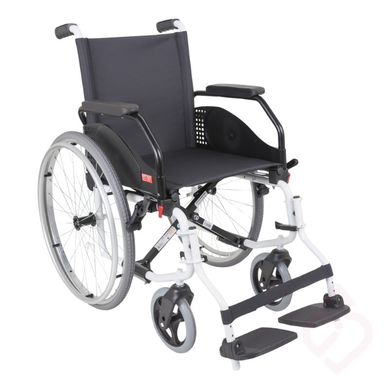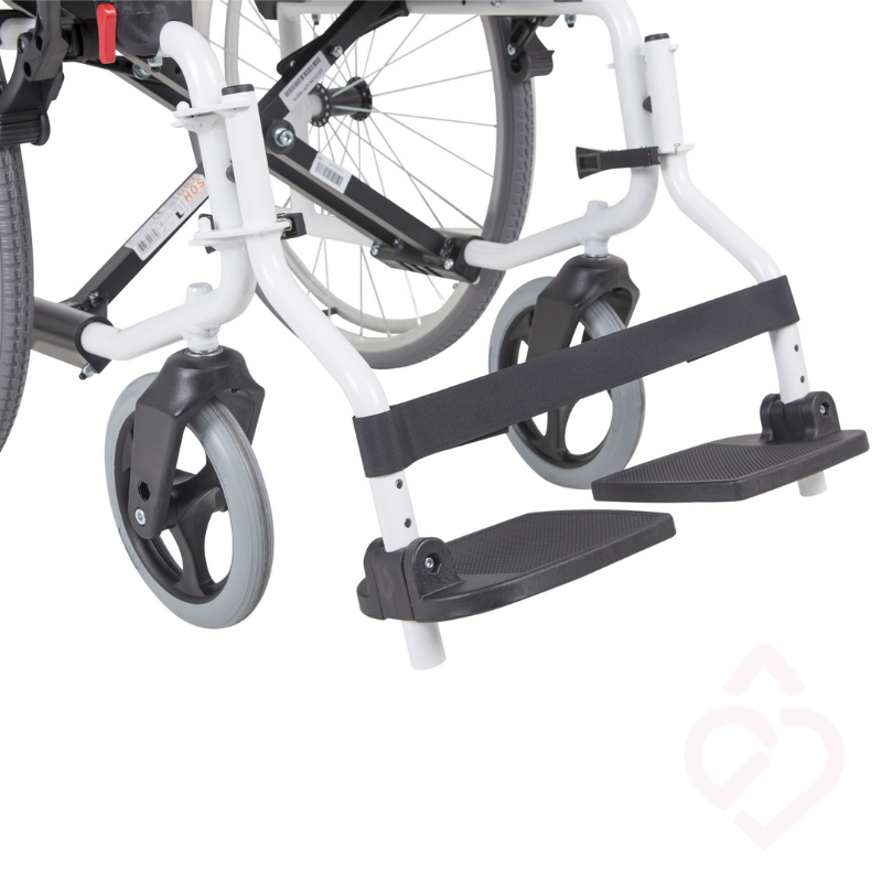 A estrutura em alumínio com apenas 14 kg torna-a robusta sem perder leveza. Os apoios de braços rebatíveis e extraíveis facilitam as transferências, enquanto o sistema quick release permite retirar as rodas traseiras rapidamente para arrumação. Suporta utilizadores até 125 kg e adapta-se a interiores e exteriores em terreno plano. Com ponteira traseira para inclinação em pequenos obstáculos, travões seguros e cruzeta tripla que garante estabilidade, esta cadeira alia conforto, segurança e durabilidade. Uma solução versátil que promove mobilidade, independência e qualidade de vida.