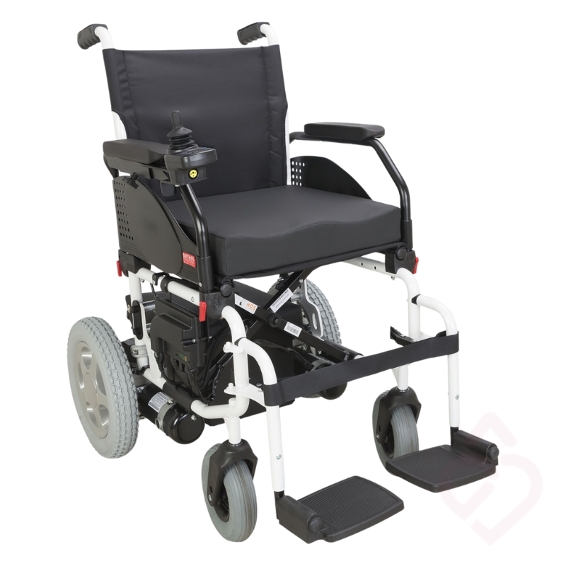 É compacta, muito manobrável e fácil de utilizar. As baterias podem ser removidas e a cadeira pode ser fechada, facilitando o transporte e a arrumação. Os apoios de pés são rebatíveis ou extraíveis, ajudando nas transferências.