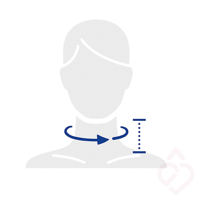 – Alturas do colar cervical (altura do pescoço): 6,5 / 8,5 / 10 cm