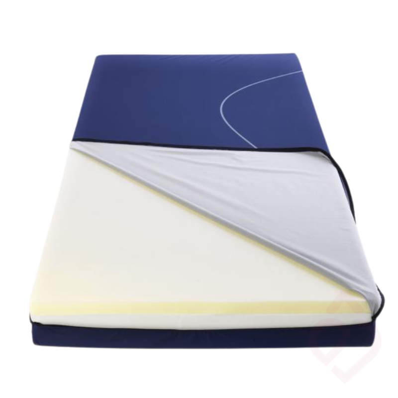 Prevenção de escaras – indicado para utilizadores com risco baixo a elevado de escaras. Possui duas camadas: uma camada superior de espuma viscoelástica de 4 cm e uma base de espuma de elevada resiliência que dá suporte ao utilizador. A combinação das duas camadas adapta-se ao corpo, alivia tensão e pressão e distribui os pontos de pressão de forma uniforme.