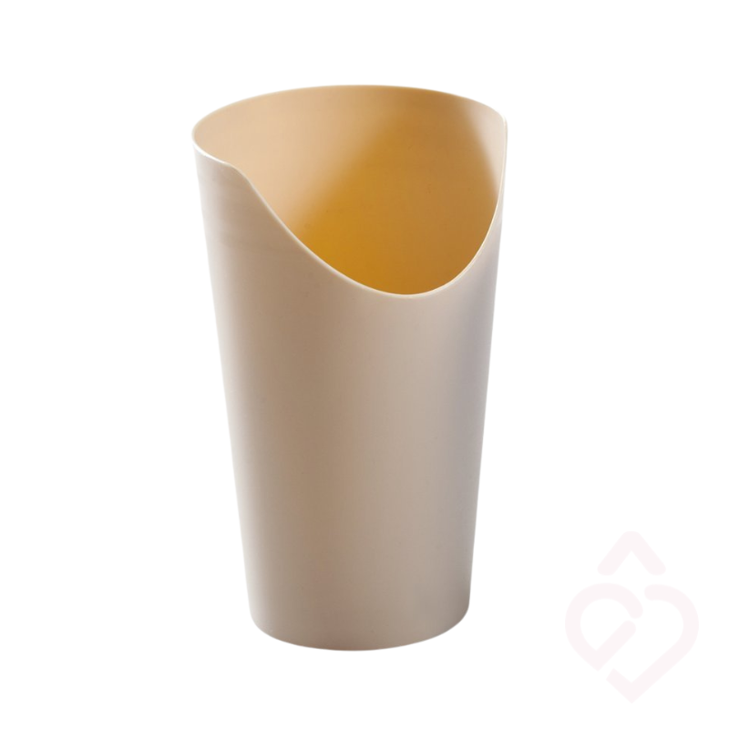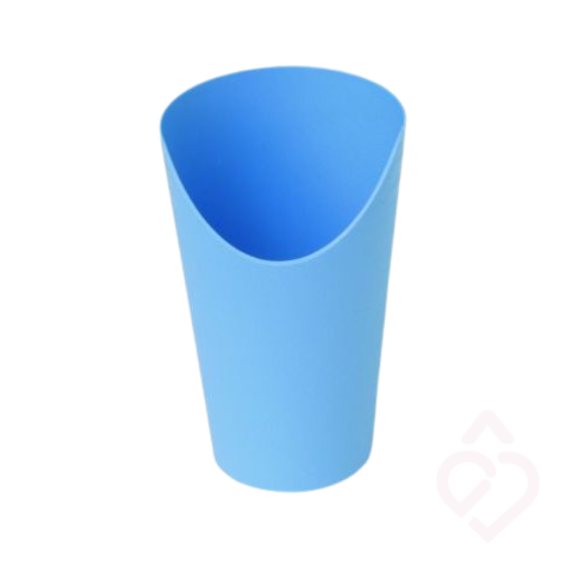 O Copo recortado, prático e funcional, concebido para facilitar a ingestão de líquidos sem necessidade de inclinar a cabeça para trás. O recorte frontal permite que o nariz encaixe no copo, evitando a extensão do pescoço e tornando o ato de beber mais confortável.