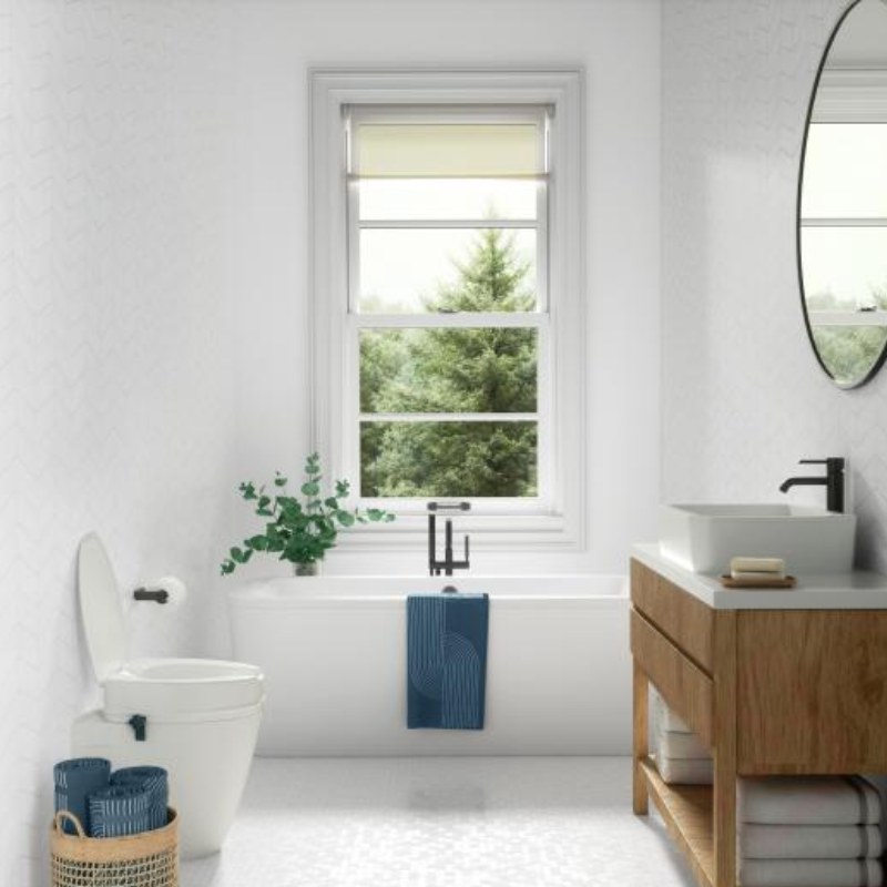 Design simples e discreto – Adapta-se facilmente a diferentes espaços e ambientes. O design foi criado para apoiar a autonomia e tornar as rotinas de higiene mais seguras e naturais.