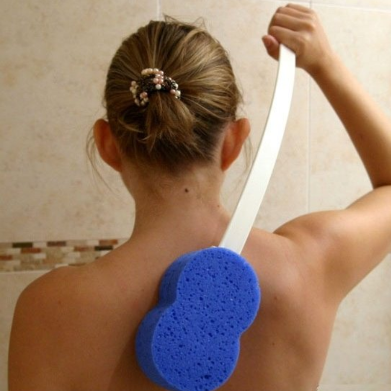 Útil – Indicada para pessoas com dificuldade em dobrar-se ou em manter a posição para lavar as costas ou os pés. A esponja com cabo comprido permite realizar a higiene corporal sem depender de ajuda.