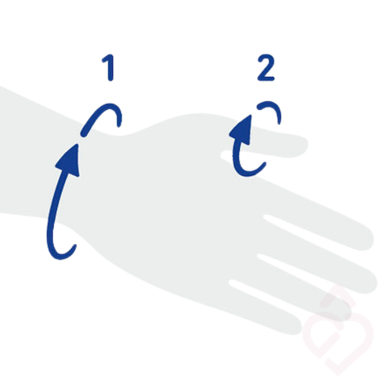 – Tamanhos (circunferência do pulso / circunferência do polegar):