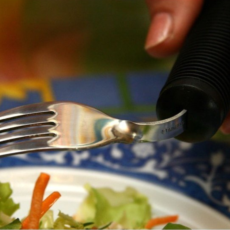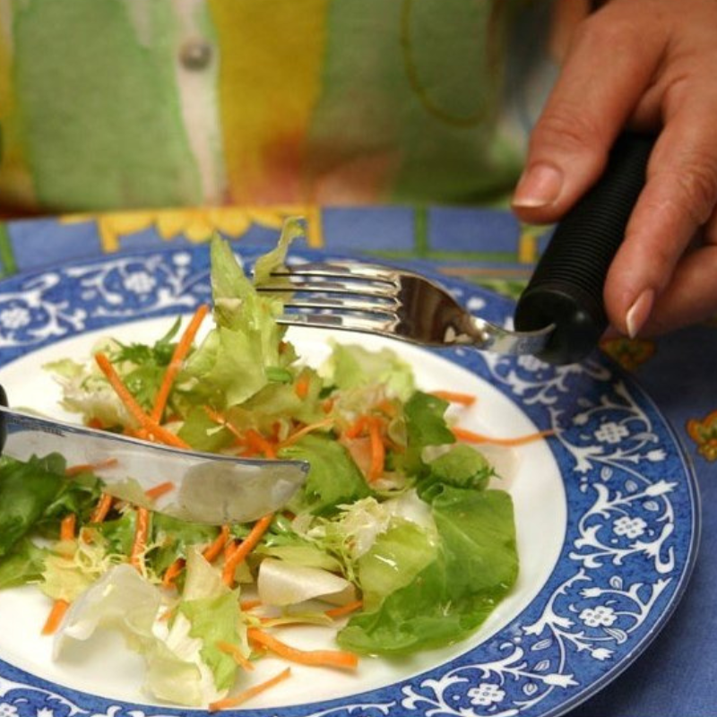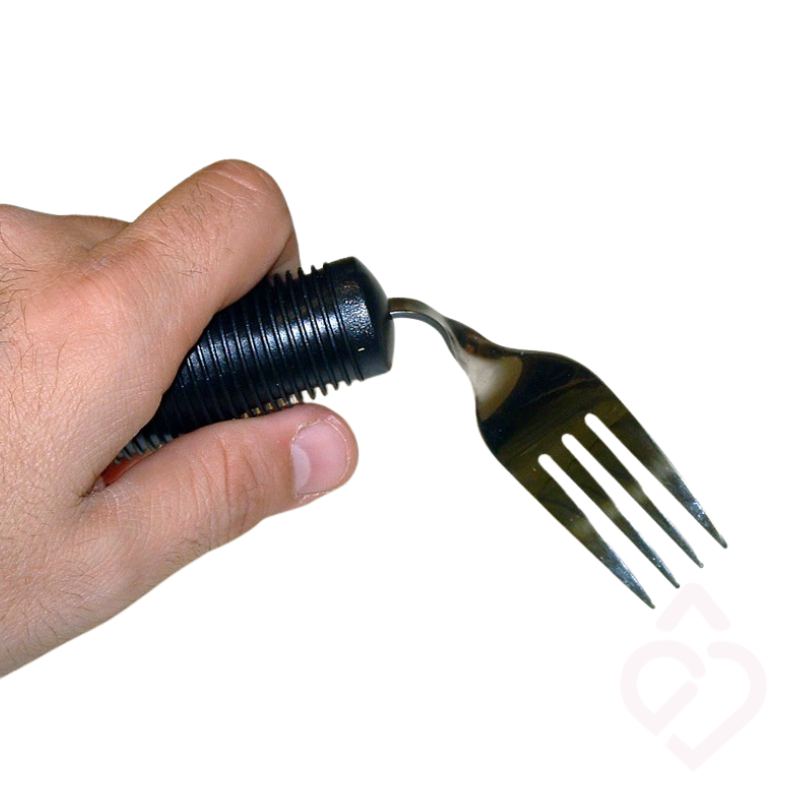 Útil – Garfo indicado para pessoas com dificuldades nos punhos, mãos ou dedos, que têm dificuldade em segurar talheres e levar os alimentos à boca. Facilita a refeição e torna o uso do talher mais confortável e seguro