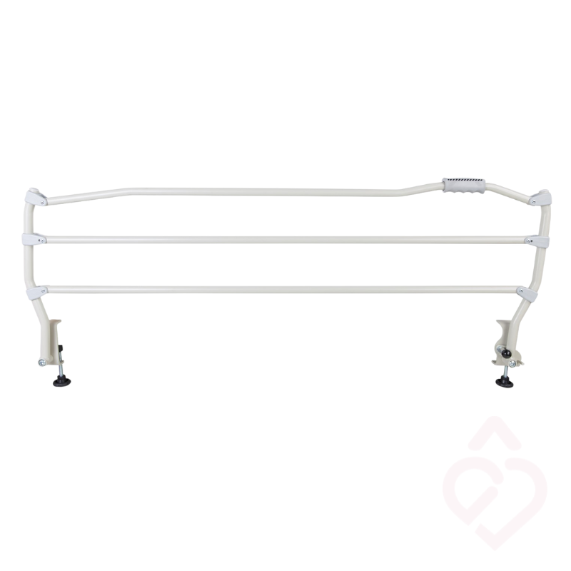 A estrutura em aço com pintura epoxy garante resistência e durabilidade para uso diário. O sistema rebatível manual permite baixar a grade lateralmente, facilitando a entrada e saída da cama e apoiando o cuidador em tarefas como higiene no leito, mudança de posição ou troca de fralda. A fixação é feita através de garra ajustável ao estrado lateral, sem necessidade de furos.
