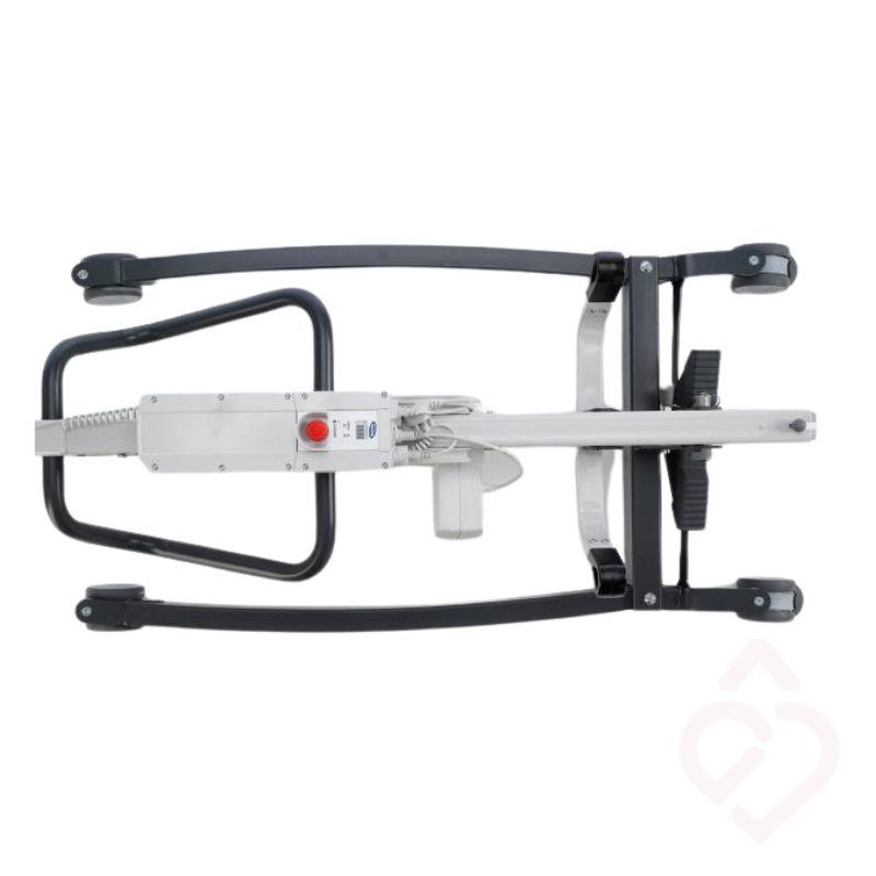 O braço comprido e com elevada amplitude oferece mais espaço ao paciente, mesmo na posição mais alta, reduzindo o risco de contacto dos membros inferiores com o equipamento. Proporciona conforto e segurança ao elevar ou transferir o utilizador de e para a cama, cadeira ou até do chão.