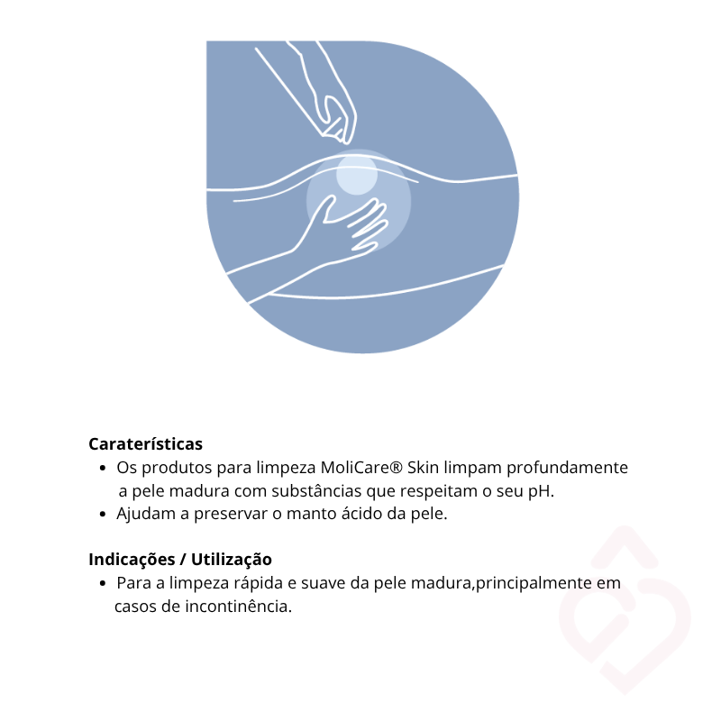 Peles sensíveis – Pode ser utilizado em todos os tipos de pele, incluindo pele sensível. É adequado para pessoas acamadas ou com incontinência. A sua composição proporciona uma limpeza suave, ajudando a proteger a pele sensível e a manter a pele madura cuidada.