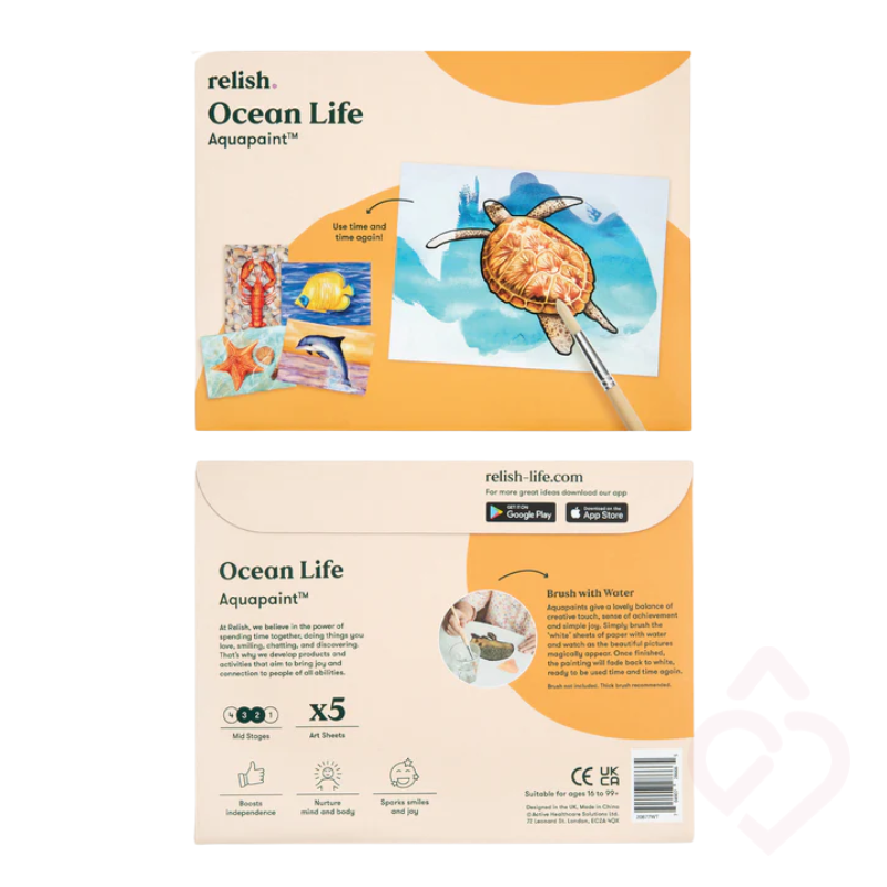 O Jogo de Pintura com Água “Vida no Oceano” inclui 5 imagens de temática marinha para pintar apenas com água, usando pincel ou dedos. As cores surgem ao aplicar água e desaparecem ao secar, permitindo reutilização ilimitada. Esta atividade promove relaxamento, estimula a criatividade e incentiva conversas sobre a vida marinha, sem manchas ou necessidade de tintas.