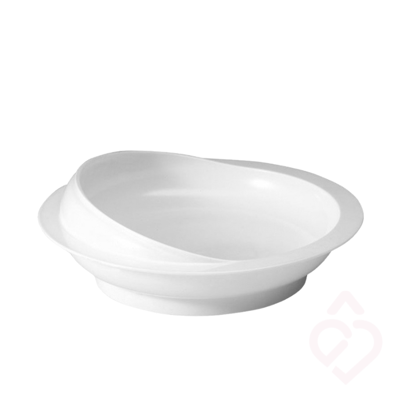 Prato com rebordo e base aderente – ideal para pessoas com mobilidade reduzida ou dificuldade em comer sozinhas. O bordo elevado cria uma barreira que impede que a comida saia do prato, mantendo a mesa limpa e organizada.