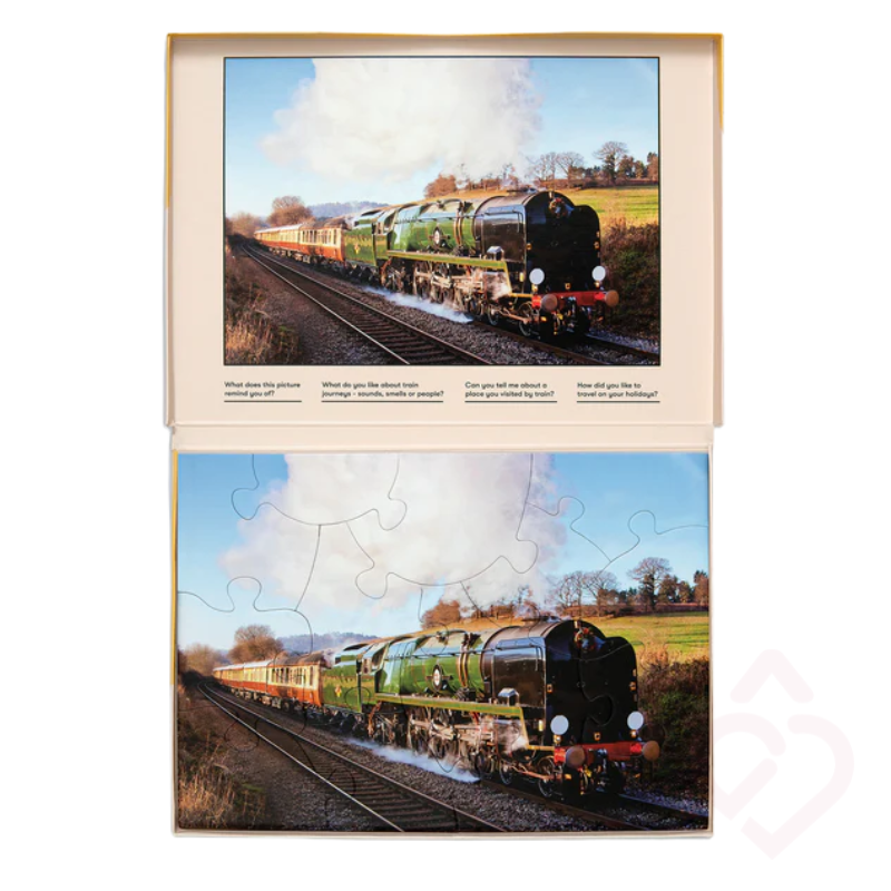 O Puzzle "Expresso Oriente" com 13 peças apresenta a imagem de uma locomotiva a vapor, ideal para apaixonados por comboios e viagens. Foi concebido para proporcionar momentos de lazer, relaxamento e estimulação cognitiva, desencadeando memórias e conversas sobre o tema.