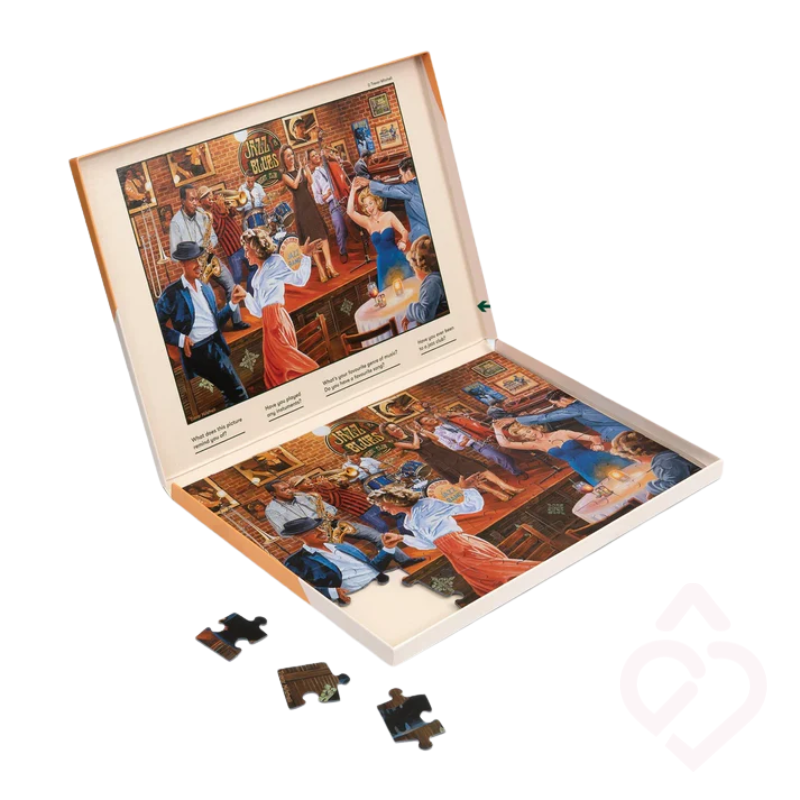O Puzzle “Sapatos de Dança" com 63 peças apresenta uma imagem artística e cheia de detalhe, ideal para despertar memórias ligadas à música, espetáculos e momentos de expressão corporal. Proporciona uma experiência relaxante, ao mesmo tempo que estimula a mente e incentiva a interação social. As peças grandes, resistentes e de fácil encaixe tornam este puzzle acessível a pessoas com mobilidade reduzida, visão enfraquecida ou destreza manual limitada.