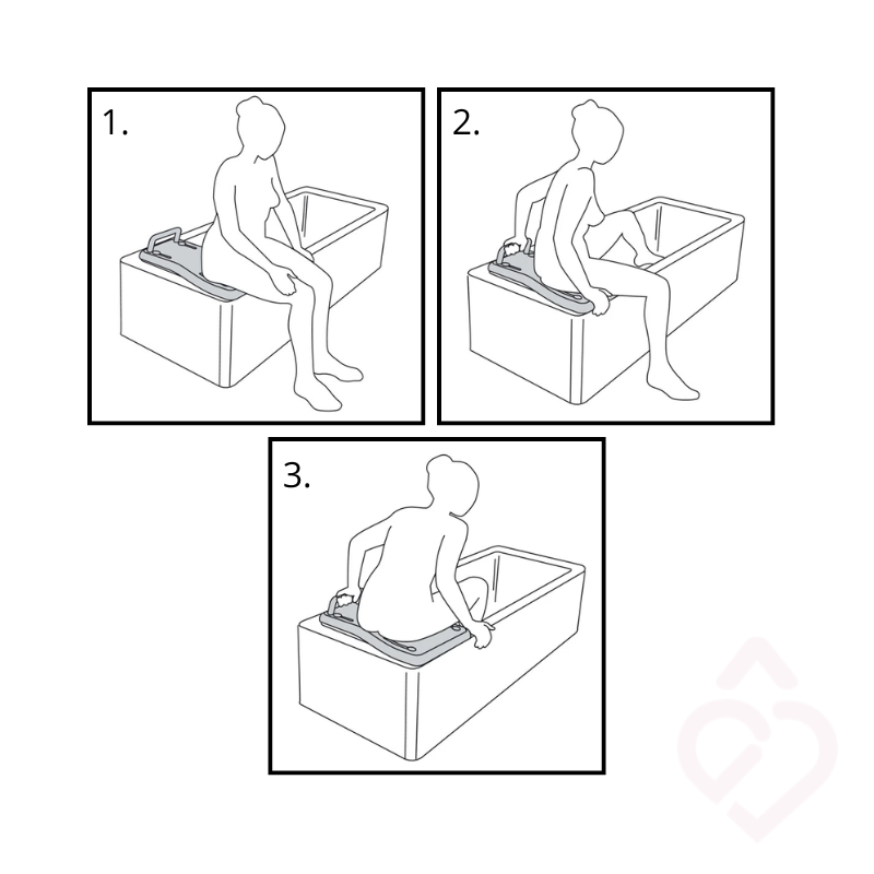– Com a outra mão, auxiliar a passagem das pernas para dentro da banheira