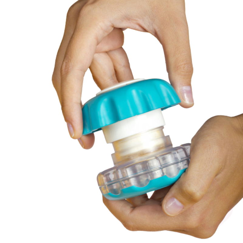 – Fácil utilização: basta inserir o comprimido e rosquear a tampa