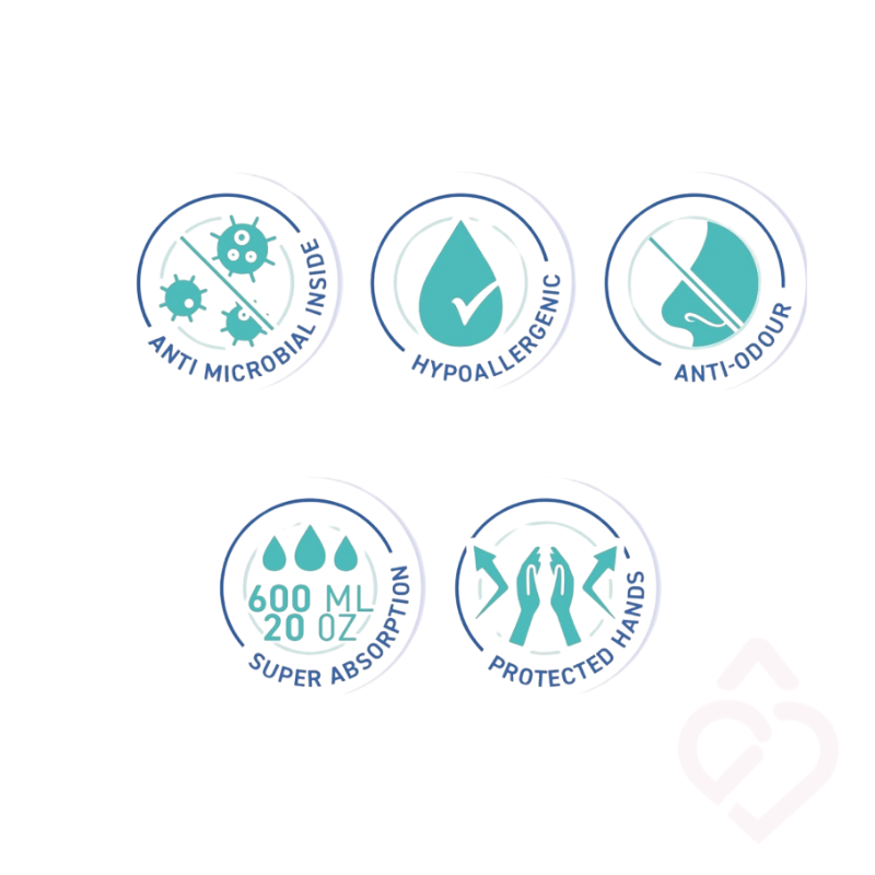 – Material do superabsorvente: micro-celulose e polímeros superabsorventes